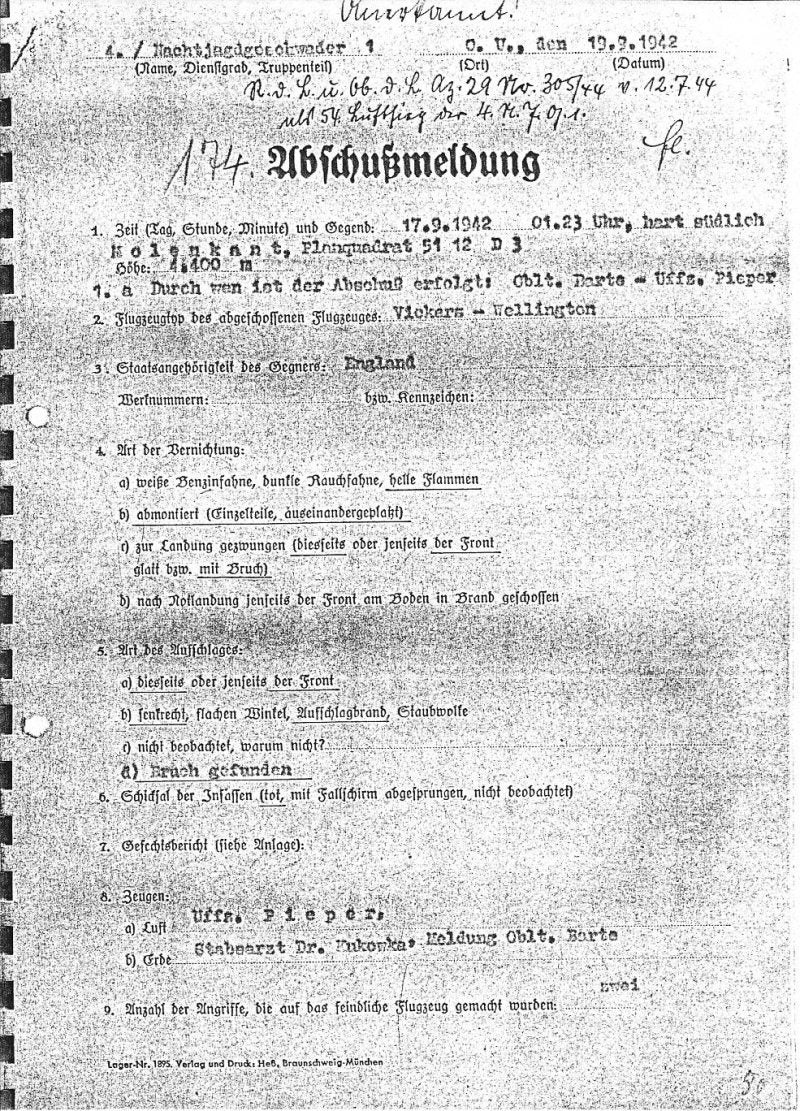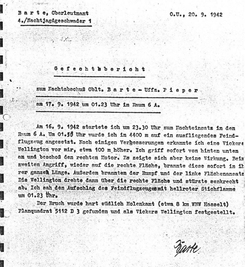 Het toestel moet gevallen zijn ongeveer 7 dagen na de geboorte van hun dochter (07-09-1942) dus rond 14-09-1942.