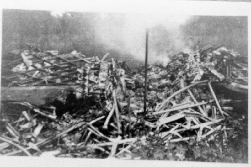 Een vleugel lag in een weide tegenover bouwmaterialen Jans (in de richting van Kuringen). Grote delen van het toestel lagen in de weide tegenover de oude boerderij.