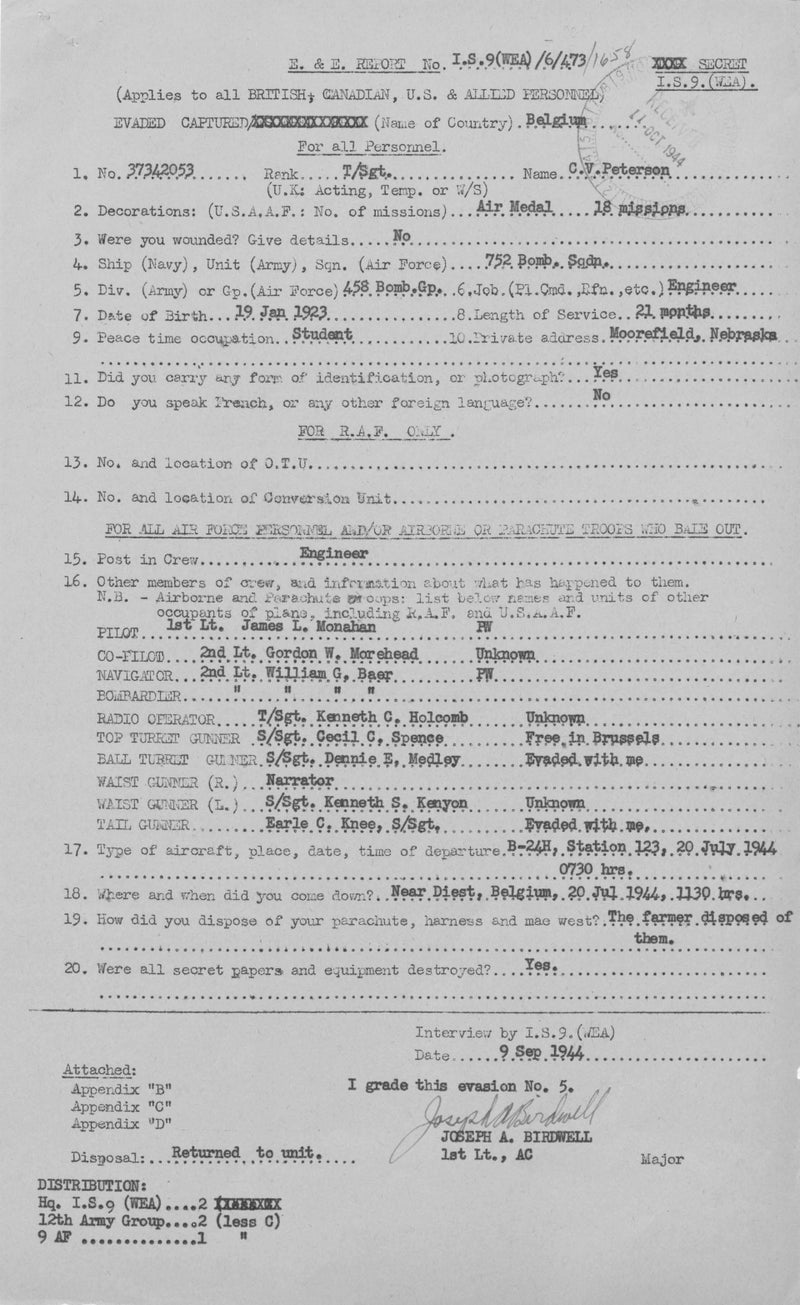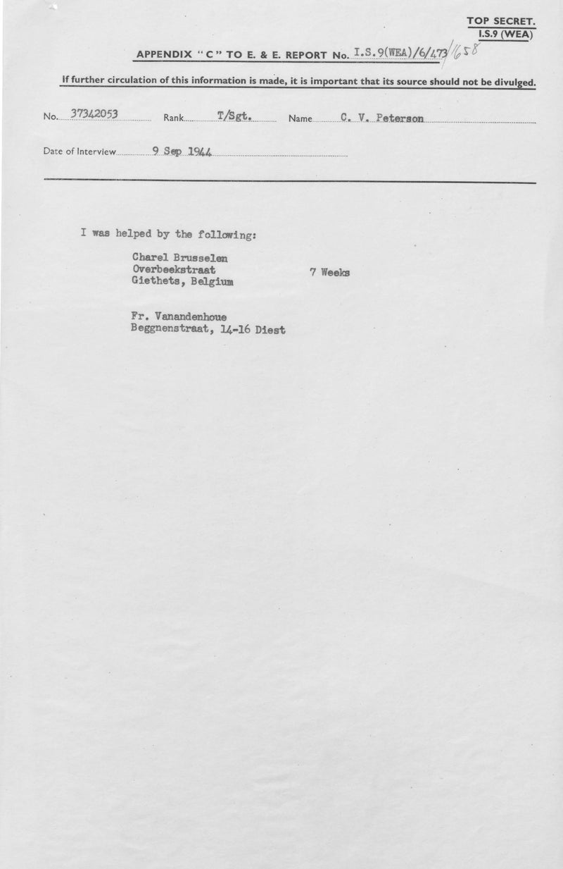 After he landed he was saved by hidden Russians at Schaffen and was taken to Alfons Snijers, Heze, Schaffen.