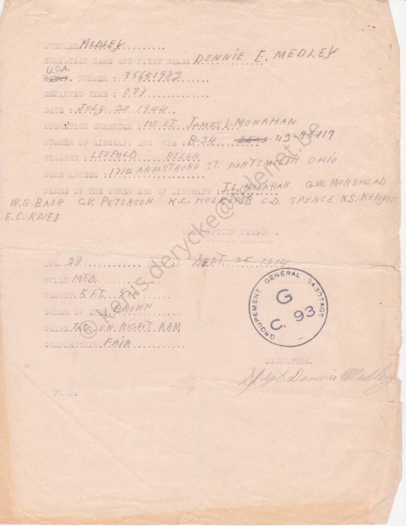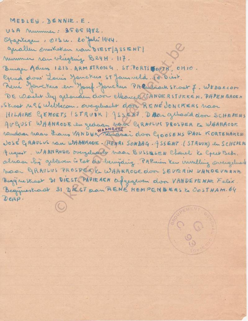 Saved by Louis Jonckers St.-Jansveld 10, Diest. René and Joseph Jonckers Papenbroekstraat 7, Webbekom after landing.