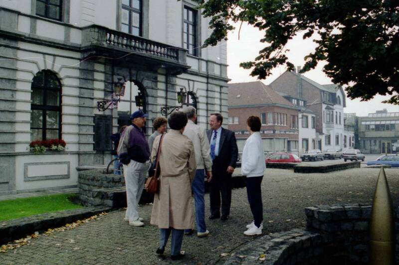 Mayor Steyaert led us through Leopoldsburg to visit the houses where the crew stayed during their escape.