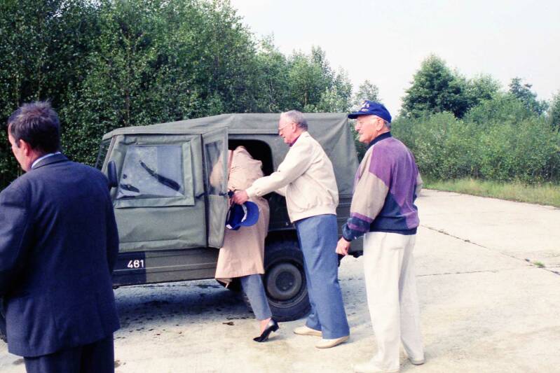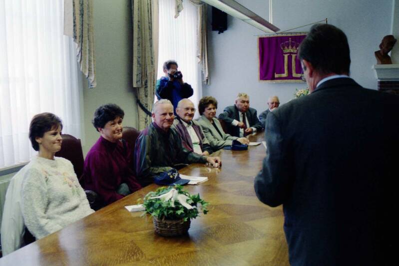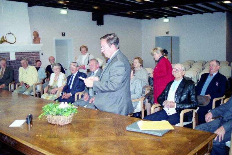 From L to R: Bergmans, the Mayor of Leopoldsburg Steyaert, Jetty Cook, Melvin Crouch, Rudy Kenis