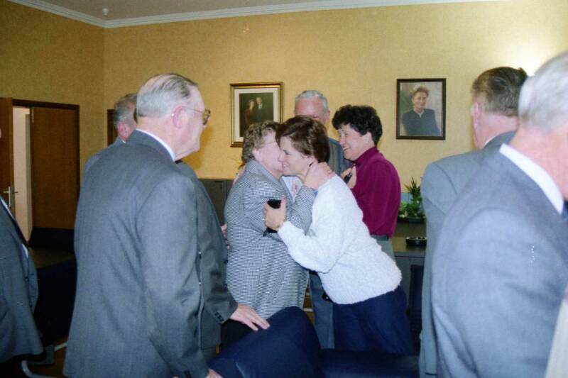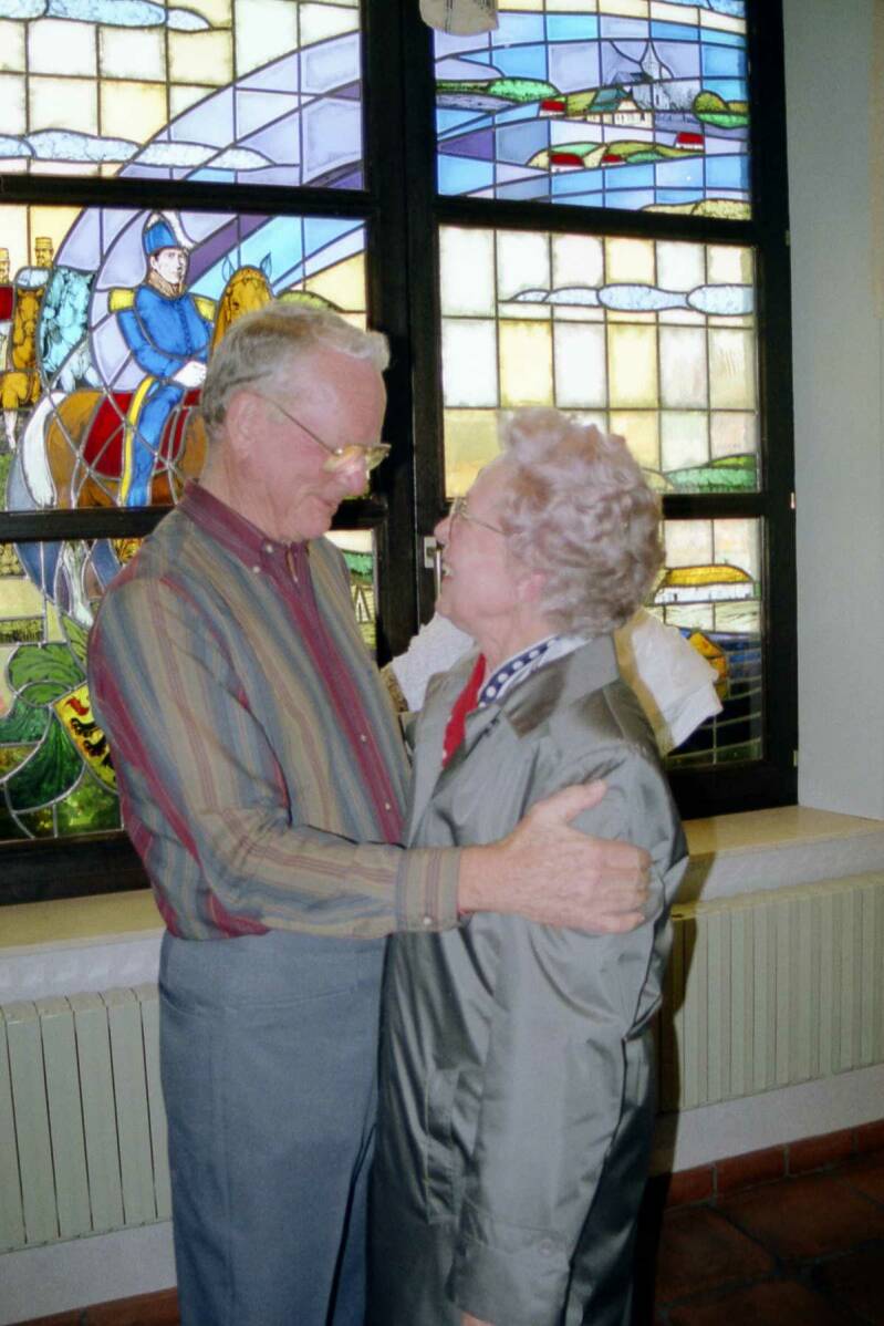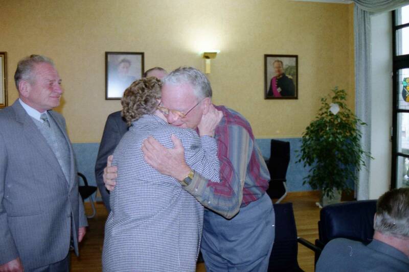 Jetty embraces Rosa Stessens, one of his helpers. (Left the husband of Rosa)