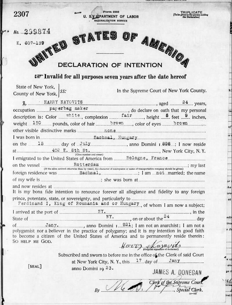 Parents Harry and Margaret Nayovitz emigrated from Hungary