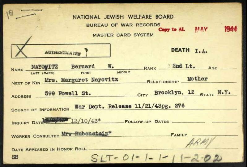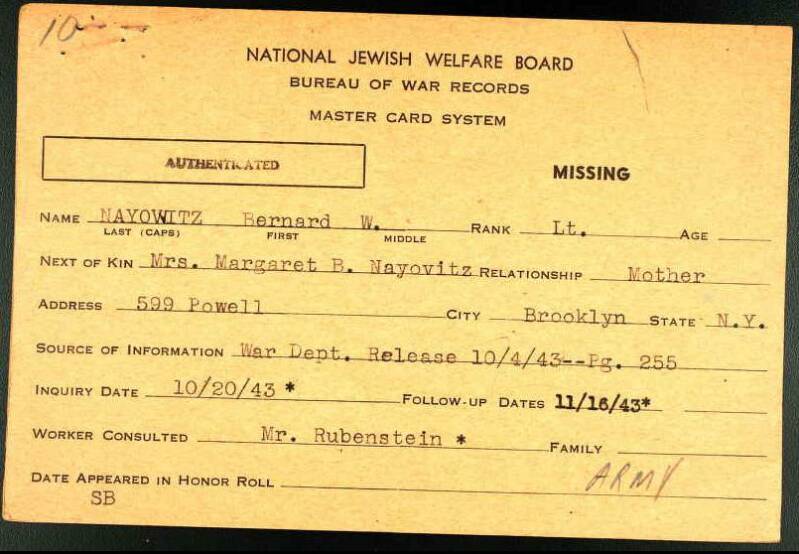 For Reuven Nayowitz, one of the most amazing things about this newly opened chapter of family history is how young his uncle was. True, Bernie was old for an enlistee — 25. But to Reuven, 70 years later, that seems terribly young to be flying a plane into combat.