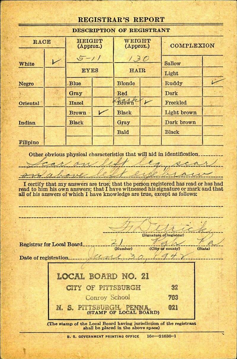 Entered service: Pittsburgh Pennsylvania, 29 July 1942