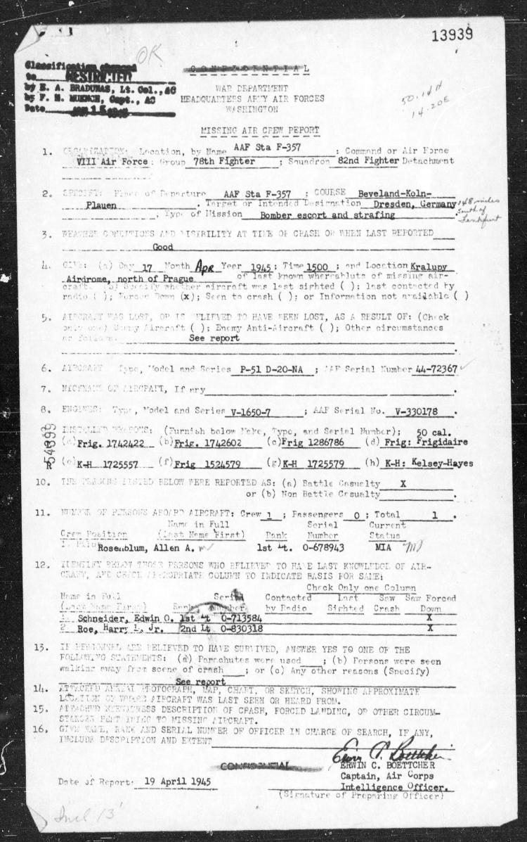 2. 342 B-17s are dispatched to hit the Merseburg/Leuna oil refinery (301); 10 others hit targets of opportunity; 10 B-17s are lost, 4 damaged beyond repair and 251 damaged; 4 airmen are KIA, 15 WIA and 92 MIA. Escort is provided by 212 of 231 P-51s; they claim 2-1-0 aircraft in the air; 1 P-51 is lost (pilot MIA).
